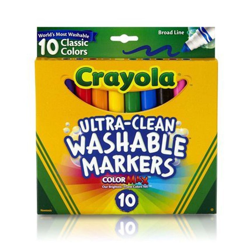 Les marqueurs lavables Crayola sont à présent ULTRA LAVABLES! Ils s’enlèvent de la peau, des vêtements et maintenant même des murs! Une lavabilité fiable offerte par le marqueur le plus lavable au monde. Détails : Comprend 10 marqueurs de couleurs différentes; Pointes larges coniques pour colorier des grandes surfaces; -