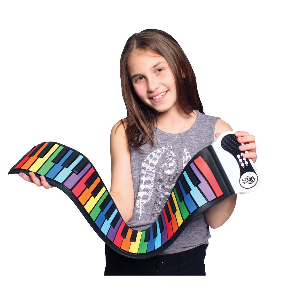 Piano flexible Laissez votre musicien intérieur s’exprimer en toute fantaisie! Flexible, ce petit piano de 49 touches s’étale sur n’importe quelle surface plane et se roule quand vous avez terminé de jouer, vous permettant de l’emporter partout où vous allez! Parfait pour les musiciens amateurs ou professionnels, il est aussi -