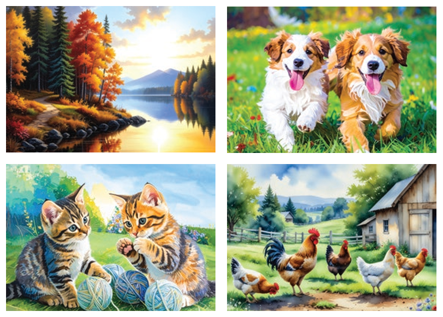 Ensembles de 4 casse-têtes Joyfull 48 mcx – La vie paisible à la campagne