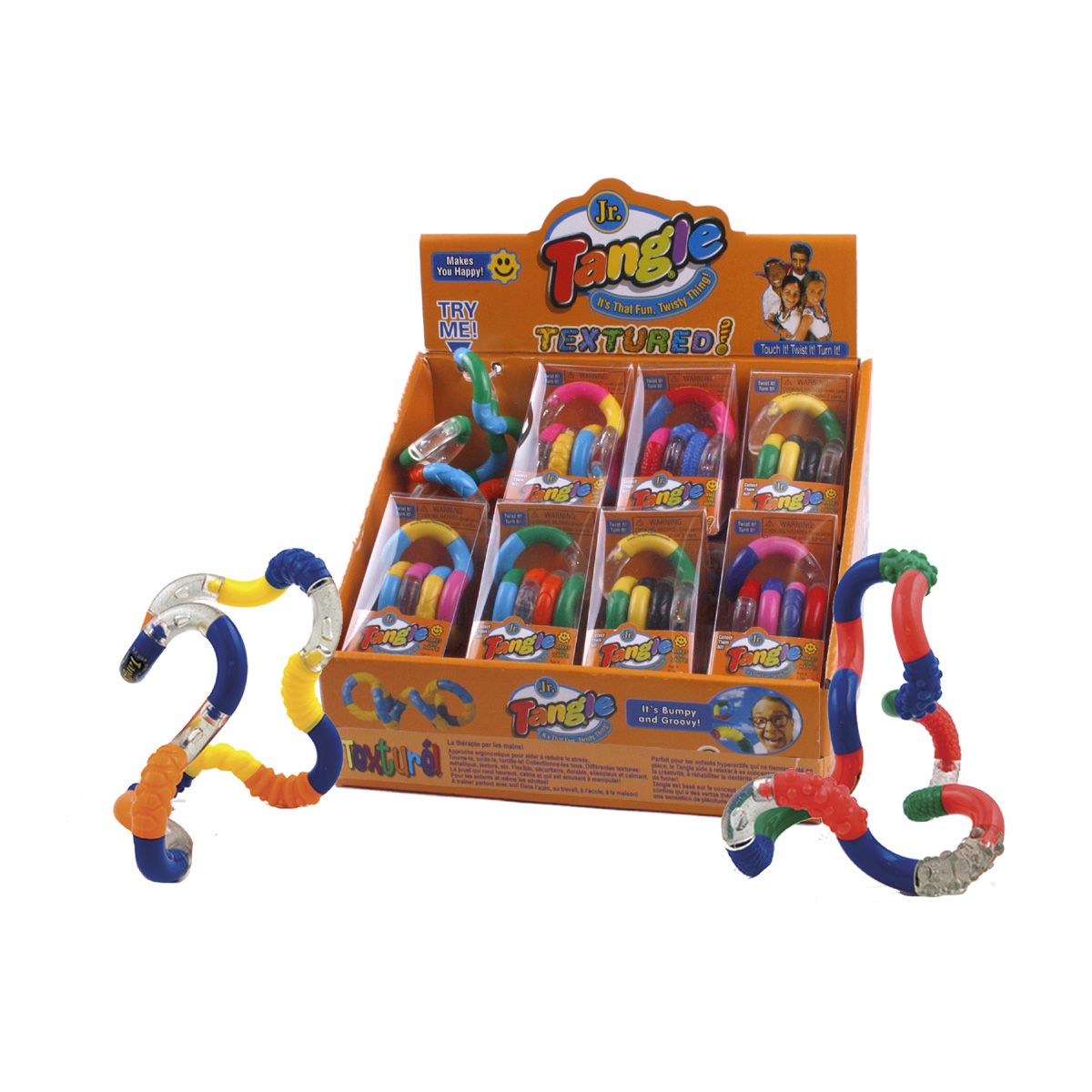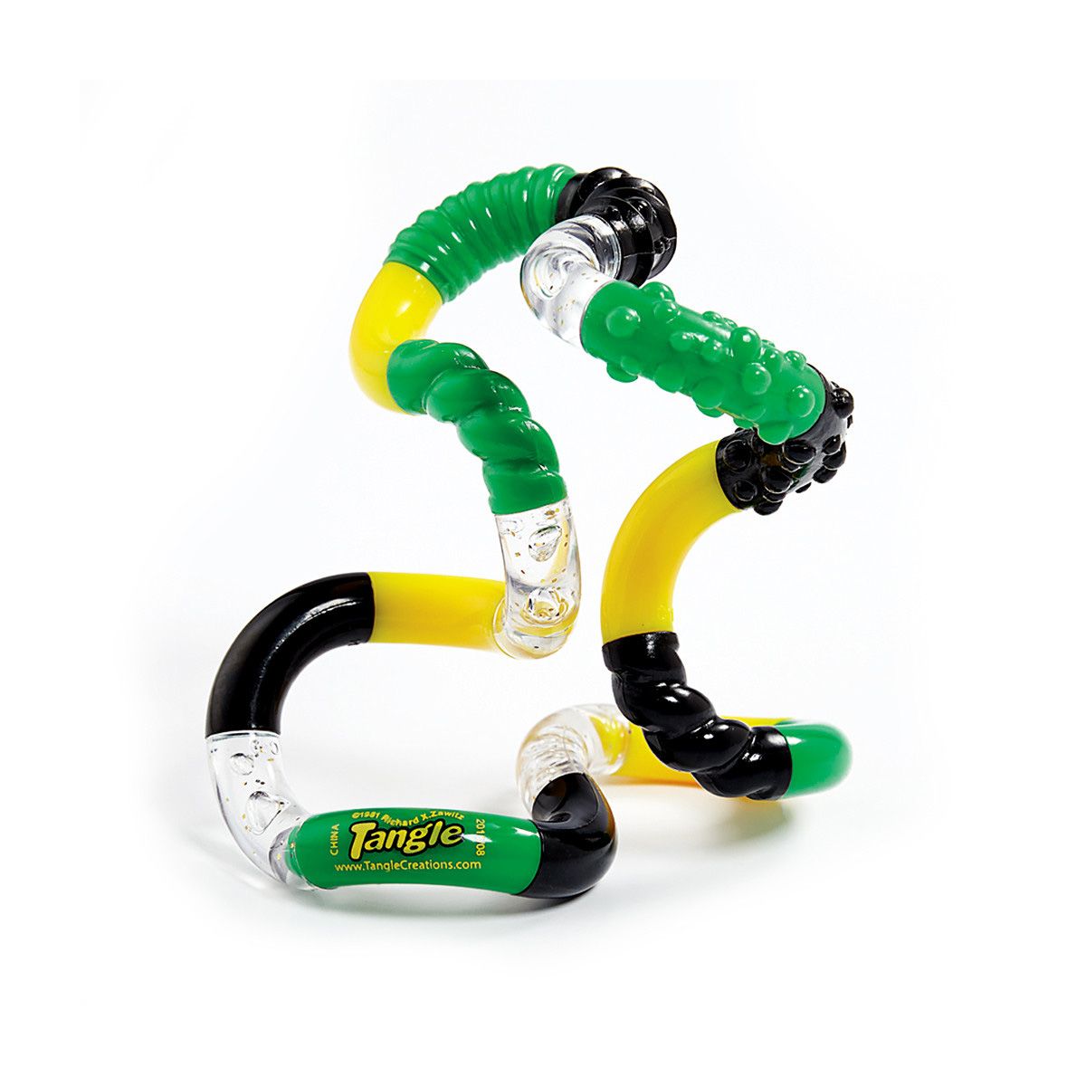 Cette version se différencie par ses sections aux différents reliefs et courbes, ce qui en accentue la texture! Les couleurs peuvent varier. Les Tangles sont des objets sans fin ni début, formés de pièces courbes de 90 degrés reliées les unes aux autres et pivotant à chaque jonction. Inspiré par le concept