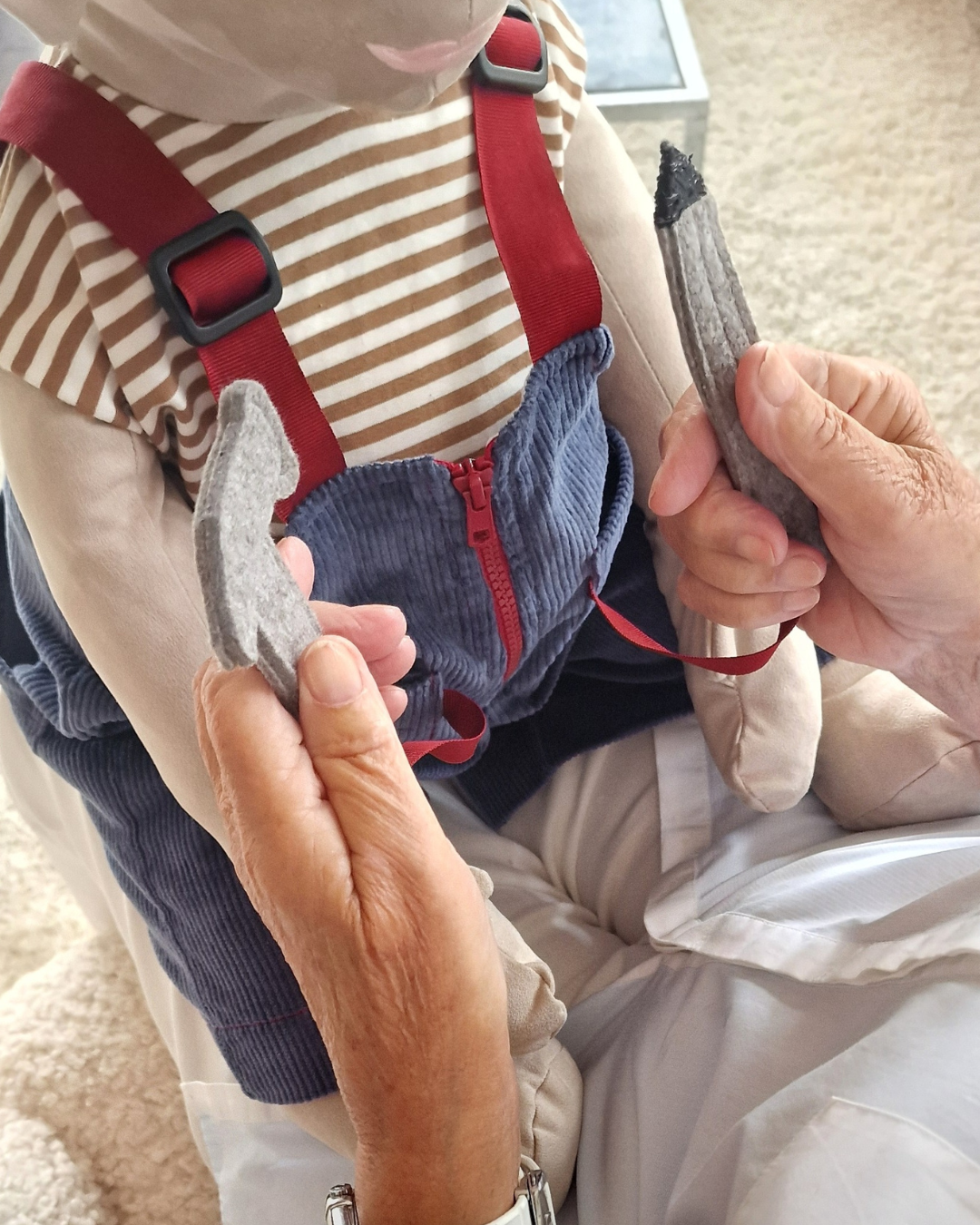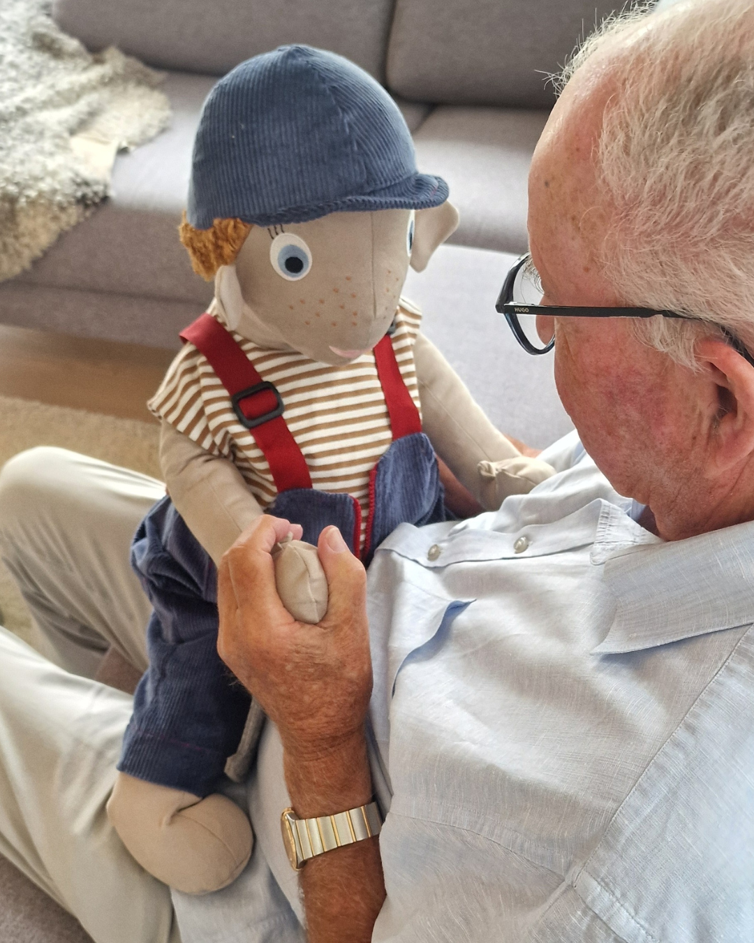 Compagnon lesté Henric, poupée apaisante de 3 kg conçue pour les aînés. Favorise le calme, la motricité fine et le réconfort en milieu de soins. -