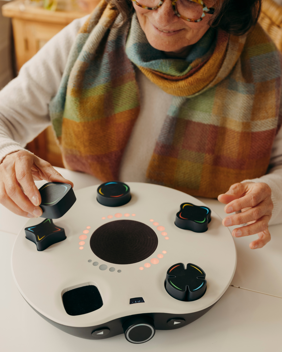 Le maestro ronds est un dispositif musical sensoriel sans écran ni Wi-Fi, conçu pour rendre la musique accessible à tous. Avec ses pastilles circulaires faciles à manipuler, il stimule la mémoire, la créativité et le plaisir de créer, tout en facilitant le travail des intervenants auprès des aînés.