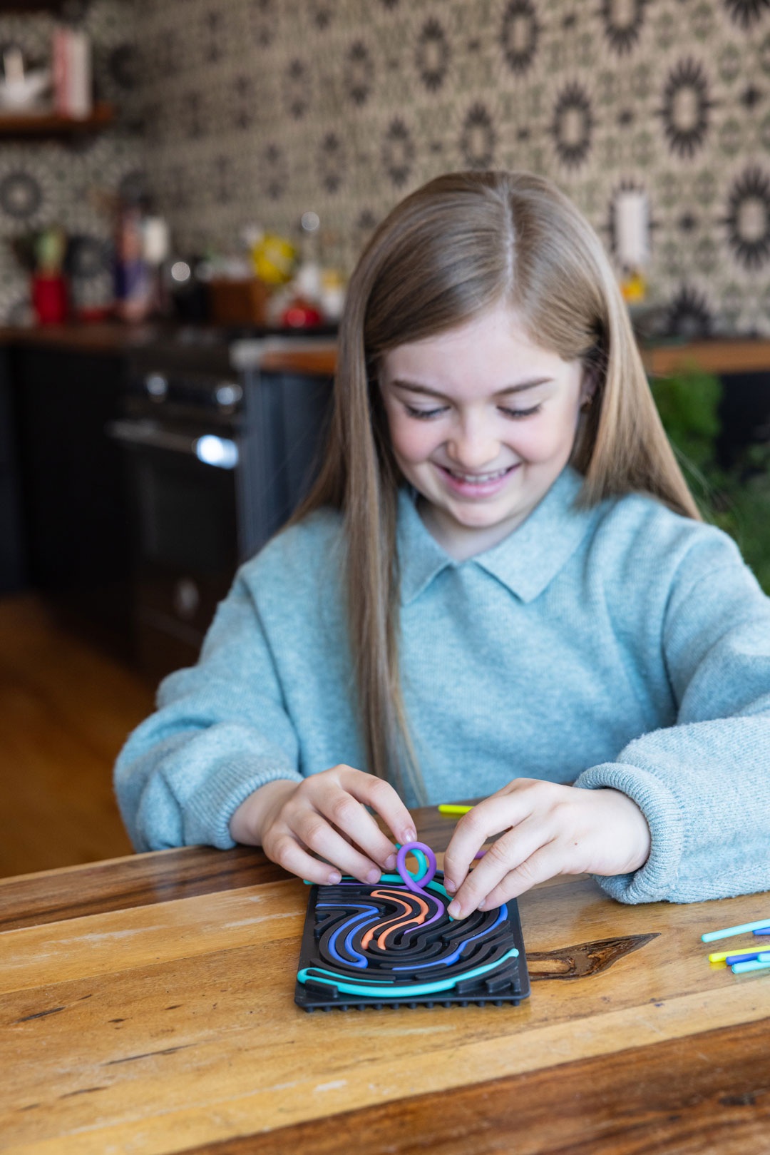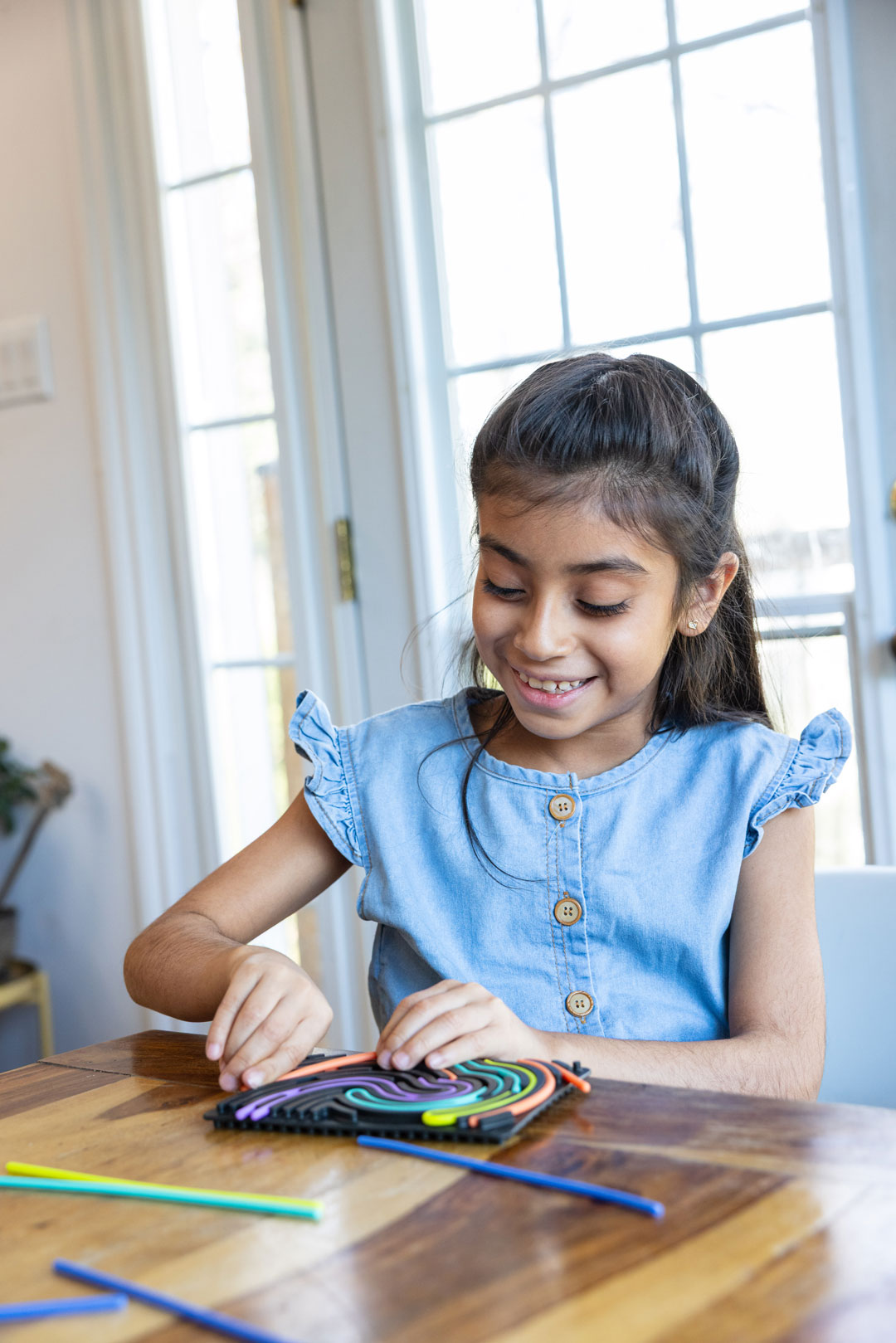La plaque sensorielle offre une expérience tactile unique qui éveille les sens et favorise le développement moteur. Elle propose deux surfaces : un côté avec des points en relief pour explorer les textures, et un autre avec des pistes en forme de vagues pour un enfilage plus complexe. -