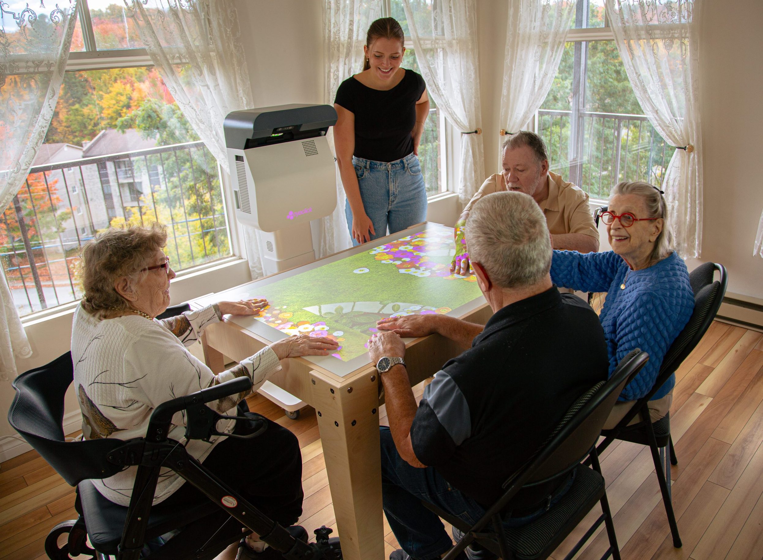Déplacez Obie Mobile Pro à travers la résidence grâce à sa conception sur roulettes afin de transformer la table ou le sol d’une salle commune en expérience immersive unique! Mouvement, plaisir et socialisation seront au cœur de votre établissement!