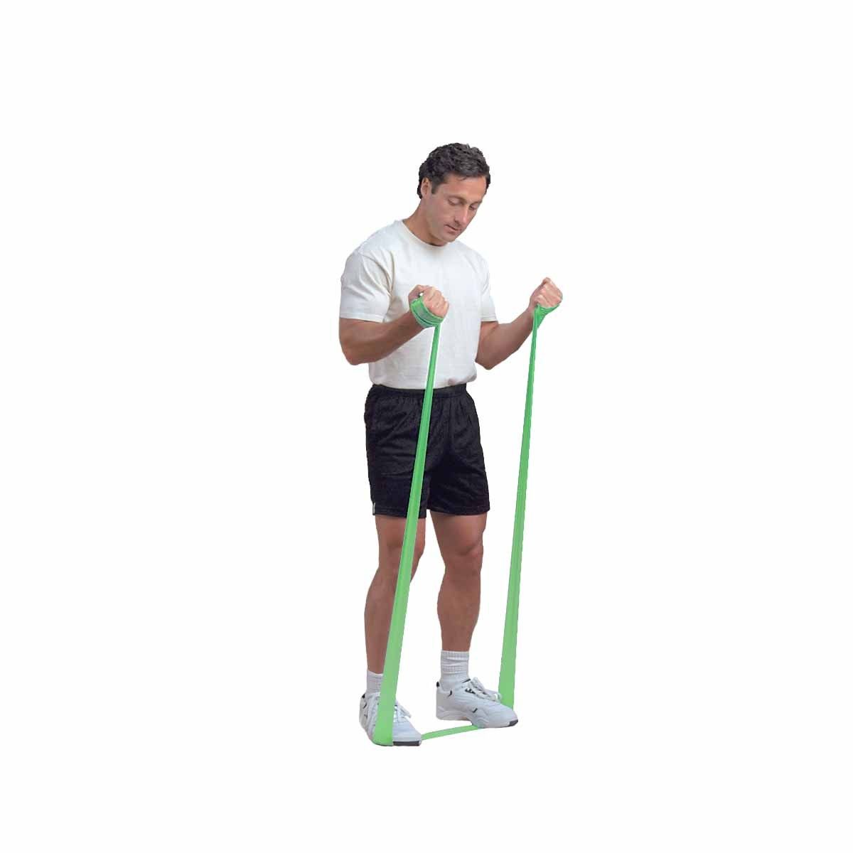Ces bandes de résistance grandement extensibles sont idéales pour travailler et renforcer les différents groupes musculaires du corps. Elles sont sans odeur et sans poudre et présentent des niveaux de résistance différents (illustrés par des couleurs distinctes). 5.5 mètres de longueur, 10 cm de largeur. -