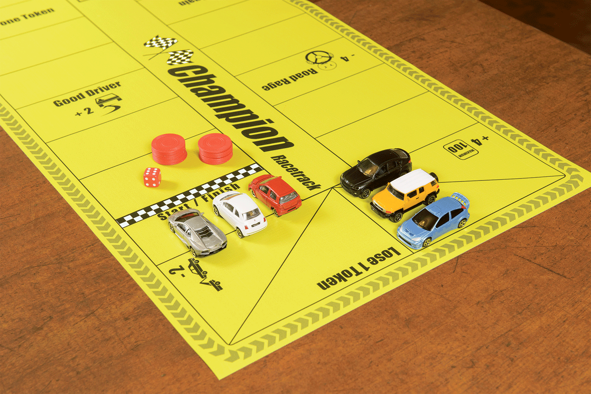 The goal of the game is to gather 5 tokens by doing the necessary laps. As soon as a player has 5 tokens, the game is over. You can either start over with the same players or do a tournament and invite 6 new participants to join the fun. The kit includes 6 cars of various makes and colors, a super resistant 18” wide x 38” long vinyl race track, one die and 25 tokens, along with the complete instructions.