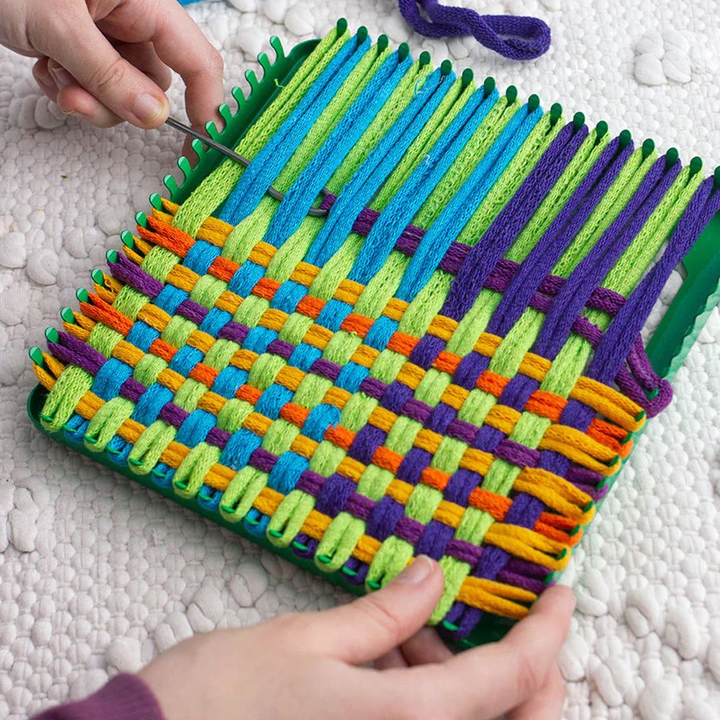 There’s probably someone you know who made potholders on a loom like this when they were a child. It’s one of those wonderful old fashioned inventions still popular and useful today. It’s fun, and easy to do for all ages!