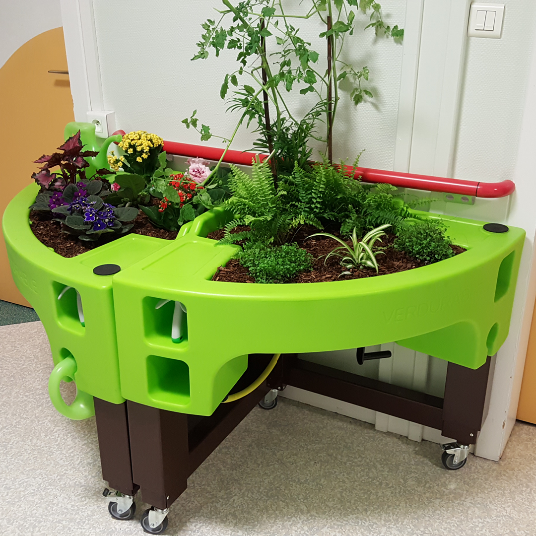 Conçu pour les milieux de vie, ce jardin thérapeutique adaptable offre une expérience horticole accessible grâce à sa hauteur ajustable et ses rangements intégrés. Il a d’ailleurs été pensé pour rendre accessible à tous l’activité qu’est le jardinage, et ce, peu importe le niveau d’autonomie et de mobilité.