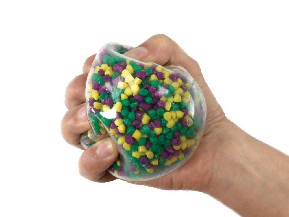 Cette balle texturée aux couleurs vives translucides est parfaite pour s’occuper les mains.