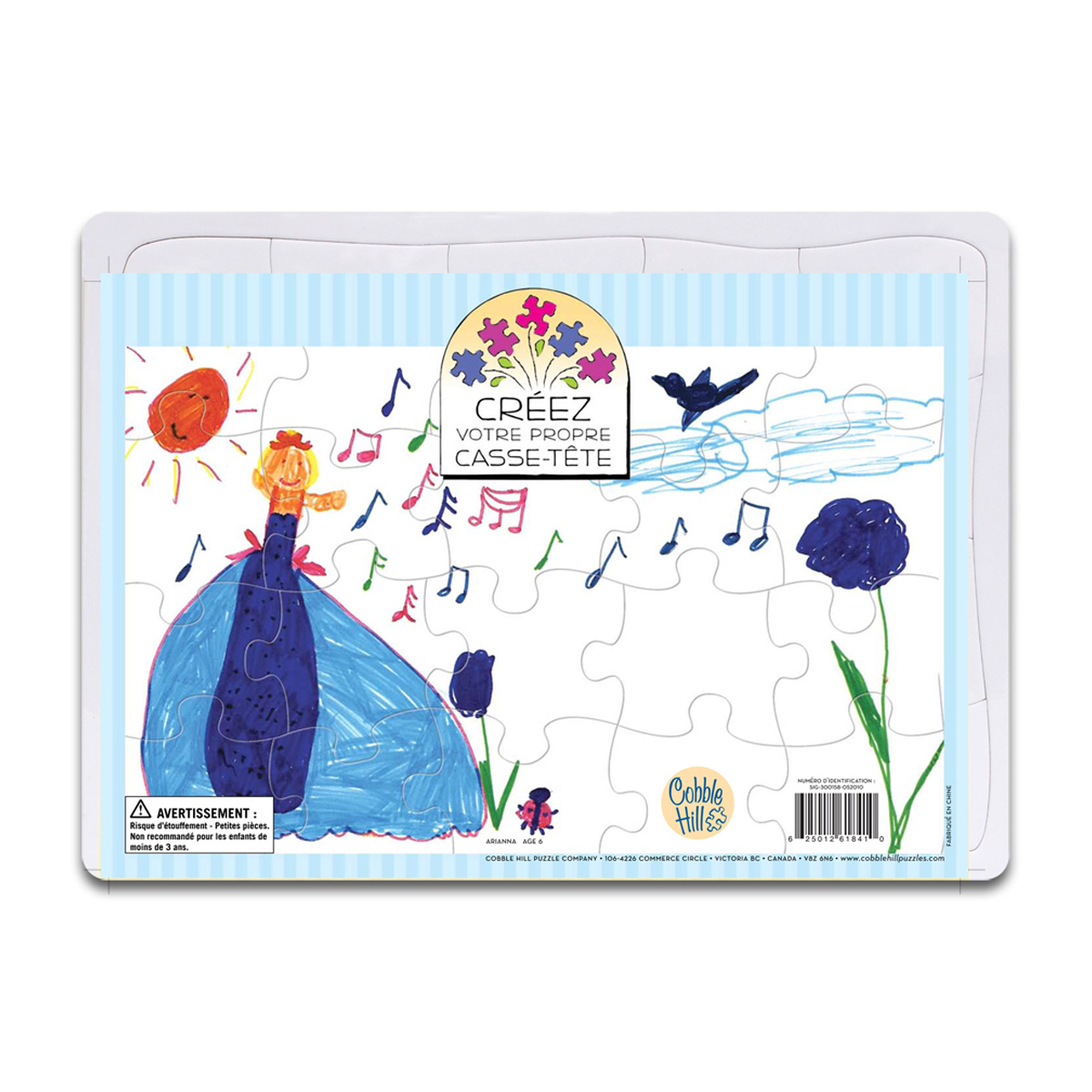 Avis aux artistes de tous âges : laissez jaillir votre créativité en personnalisant ce petit casse-tête blanc au gré de vos fantaisies! De la taille d’une carte postale, il est assez robuste pour que l’on puisse le décorer avec de la peinture, des marqueurs ou des crayons de bois.