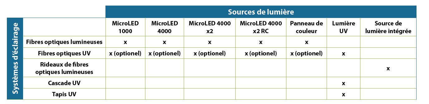 Référerez-vous à ce tableau pour choisir les systèmes et les types d’éclairage qui conviendront à votre utilisation !